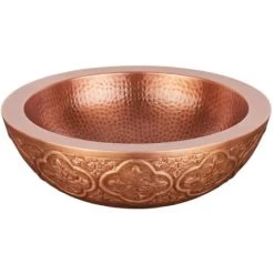 Signature Hardware Casalina 16″ Circular Double-Wall Hammered Copper Vessel Bathroom Sink – Set of 2
