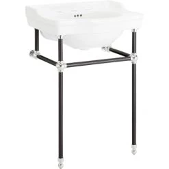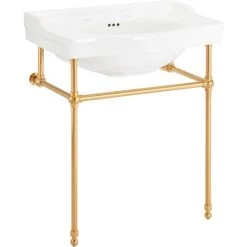 Signature Hardware Cierra 30″ Vitreous China Console Bathroom Sink with 3 Faucet Holes at 8″ Centers