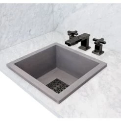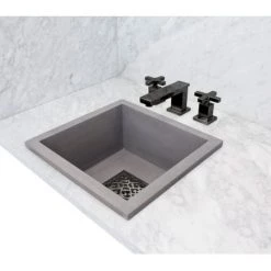 - Clean, classic cement design serves as a functional part of a kitchen or bath