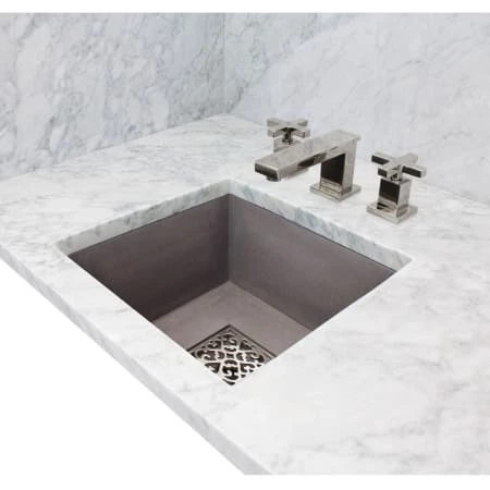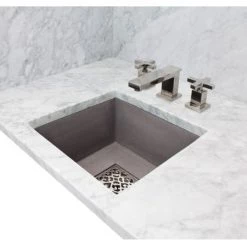 - Clean, classic cement design serves as a functional part of a kitchen or bath