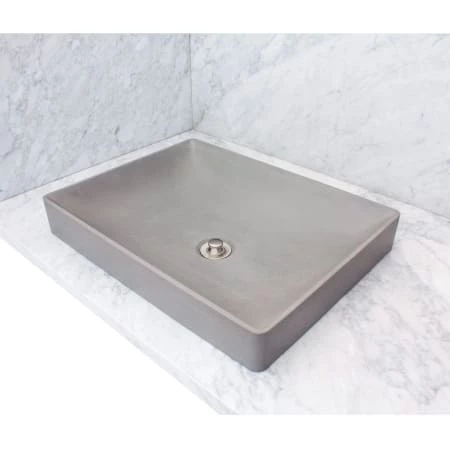 - Clean, classic cement design serves as a functional part of a kitchen or bath