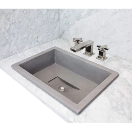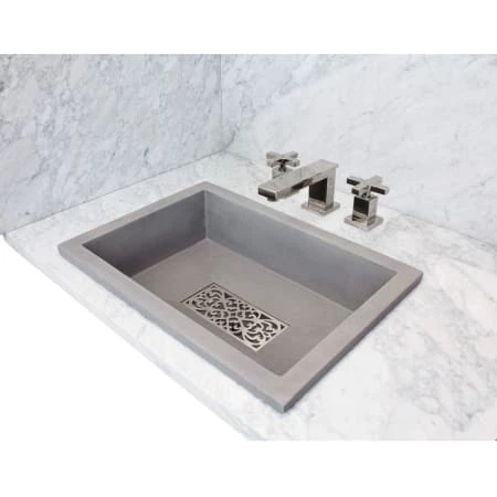 - Clean, classic cement design serves as a functional part of a kitchen or bath