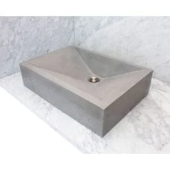 - Clean, classic cement design serves as a functional part of a kitchen or bath
