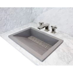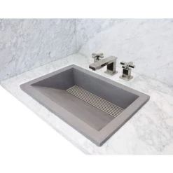 - Clean, classic cement design serves as a functional part of a kitchen or bath