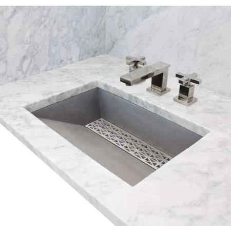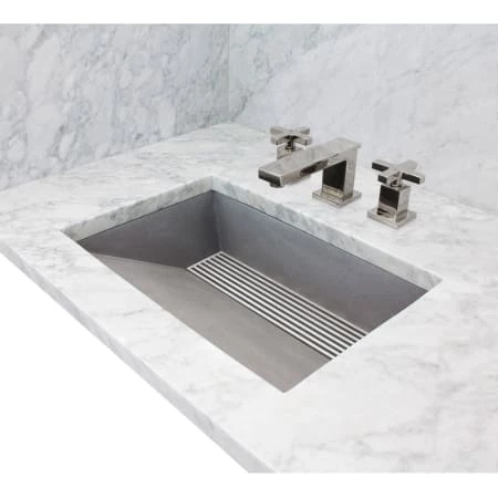 - Clean, classic cement design serves as a functional part of a kitchen or bath
