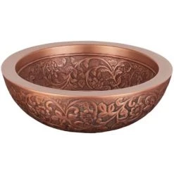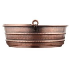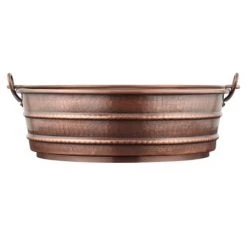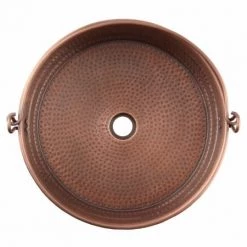 The 17″ Copper Bucket Vessel Sink is designed to bring a distinctive look to your bathroom. Decorative handles add a bit of country charm, making this item perfect for a rustic update.