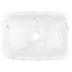The combination of elegant marble from Italy and the simple design of this curved rectangular vessel sink make it a captivating addition to your bathroom remodel. The sink features a slightly angled rim and smooth, polished interior and exterior. Choose your favorite single-hole vessel filler or faucet mounted in the wall of your home for a fully customized look.