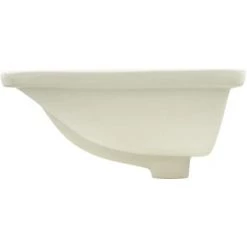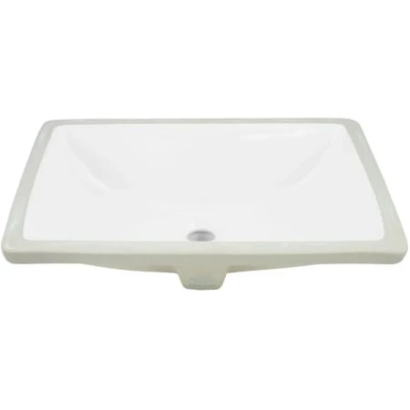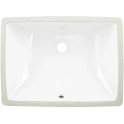 The white rectangular undermount bathroom sink features a smooth, glossy interior. Made of vitreous china, this product offers plenty of room to wash up.