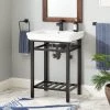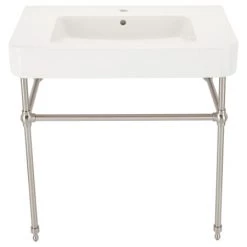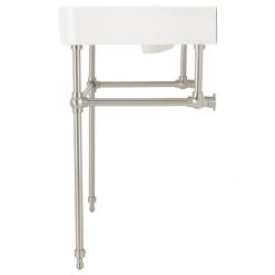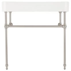 The 34″ Burleson vitreous china console sink has a brass stand that provides long-lasting support. The straightforward design of this product allows it to seamlessly complement existing decor. Made of vitreous china, the Burleson is durable and hygienic.