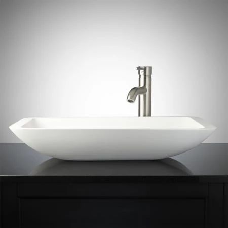 Upgrade a bath with the sleek lines and attention-grabbing shape of the Canopus resin sink. A flat rim on this vessel give it an off-the-moment chicness.