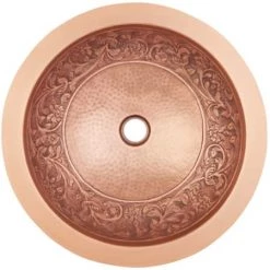 Add a garden-inspired look to your bathroom with the pretty flourishes on the 18″ Coram Copper Vessel Sink. This charming double-wall sink is made of genuine French hot process and polished by hand.