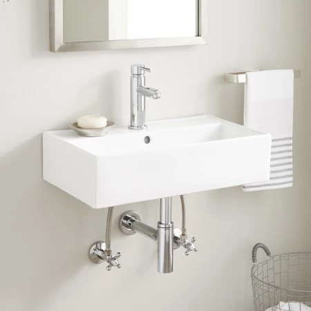 Made of vitreous china, the Goncalves wall mounted sink resists scratches, chipping, and staining. The rectangular shape offers an updated look, with its clean lines and corners ideal for a modern bathroom.