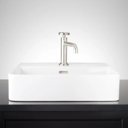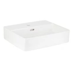 Install this Hibiscus rectangular vessel sink for elegant style and lasting performance. It has a single faucet hole and center drain for functionality, and it’s crafted from fireclay to ensure durability and damage-resistance. It includes an overflow to prevent water from spilling over the sides.