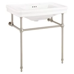 This unique piece features both modern and traditional stylings. With its brass stand and square vitreous china basin, the Mason Console Sink is perfect for adding a one-of-a-kind sink to your bathroom.