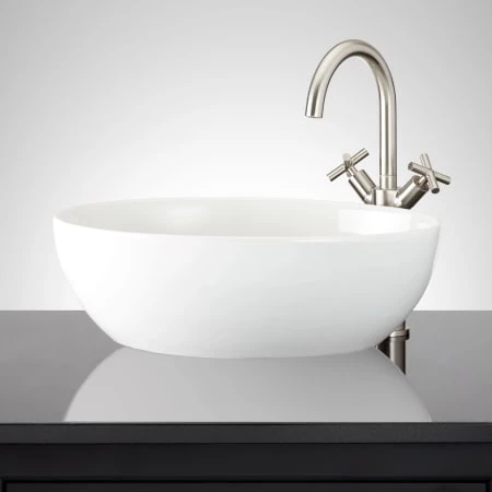 - Drain outlet hole measures 1-1/2″ making it compatible with most standard sized lavatory sink drains