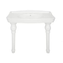 Supported on two beautifully detailed legs and designed for mounting to the wall, the Palais Console Sink is a lovely addition to the traditional bathroom. This space-saving sink features a backsplash to protect walls and an easy-to-clean vitreous china surface.