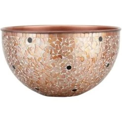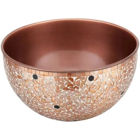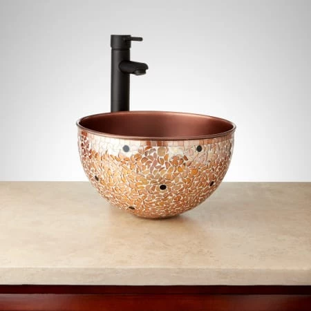 Different than most glass mosaic sinks, this vessel features a pattern of beautiful glass pieces on the outside of the bowl and smooth copper on the interior. The multi-colored design makes it a versatile and attractive piece that will serve your home well.