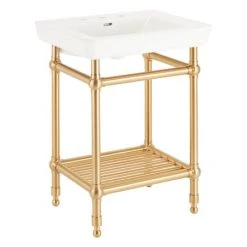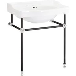 Signature Hardware Cierra 30″ Vitreous China Console Bathroom Sink with 3 Faucet Holes at 8″ Centers